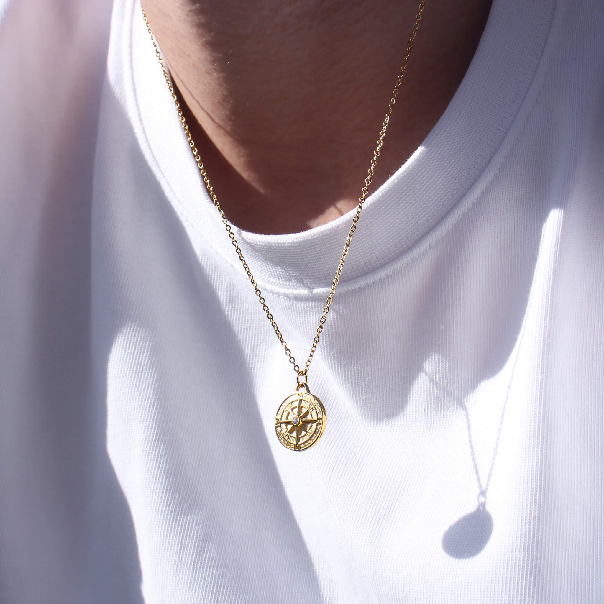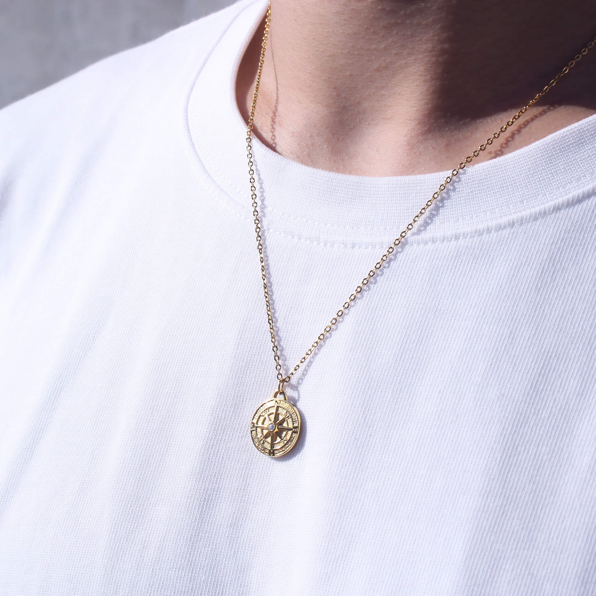 316L Compass Coin Diamond Necklace