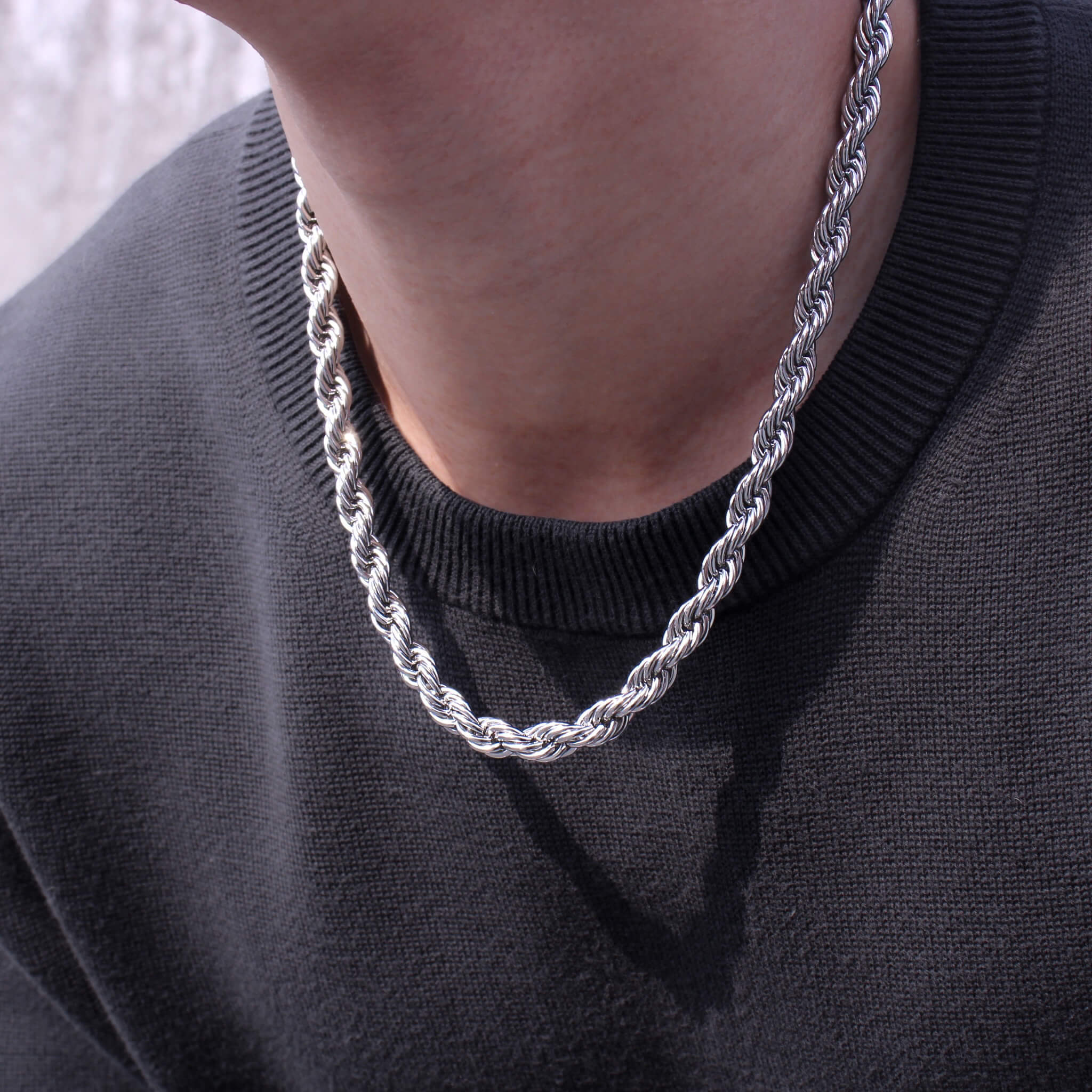 ロープチェーンはエレガントでありながらも存在感をしっかりと感じさせ、どんなスタイルにも華やかさをプラスします。