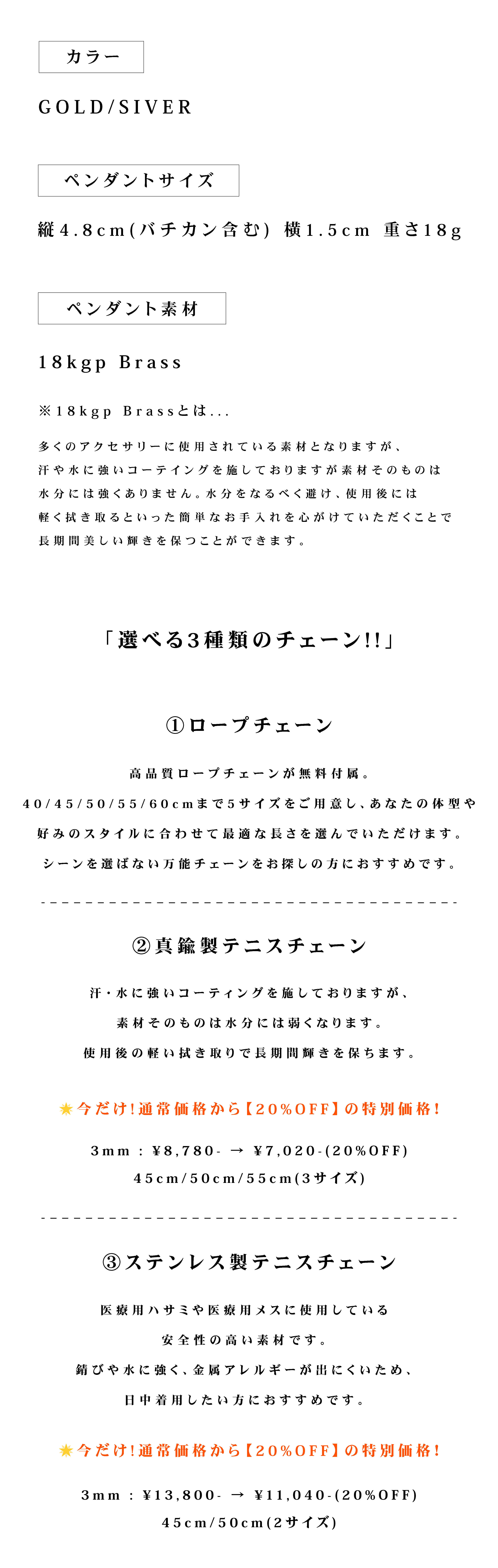 ※ステンレステニスチェーン50cmのみご予約となります。